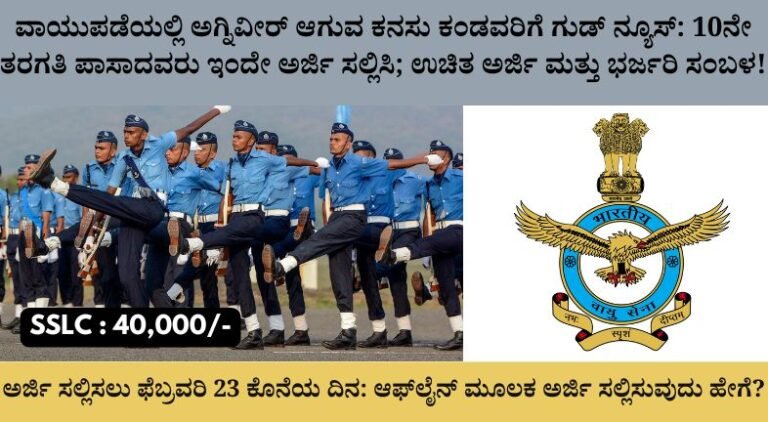 ವಾಯುಪಡೆಯಲ್ಲಿ ಅಗ್ನಿವೀರ್ ಆಗುವ ಕನಸು ಕಂಡವರಿಗೆ ಗುಡ್ ನ್ಯೂಸ್: 10ನೇ ತರಗತಿ ಪಾಸಾದವರು ಇಂದೇ ಅರ್ಜಿ ಸಲ್ಲಿಸಿ; ಉಚಿತ ಅರ್ಜಿ ಮತ್ತು ಭರ್ಜರಿ ಸಂಬಳ!