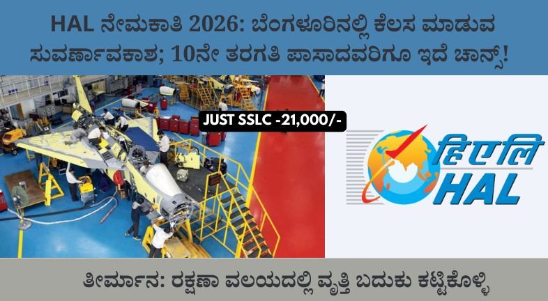HAL ನೇಮಕಾತಿ 2026: ಬೆಂಗಳೂರಿನಲ್ಲಿ ಕೆಲಸ ಮಾಡುವ ಸುವರ್ಣಾವಕಾಶ; 10ನೇ ತರಗತಿ ಪಾಸಾದವರಿಗೂ ಇದೆ ಚಾನ್ಸ್! ಉಚಿತವಾಗಿ ಅರ್ಜಿ ಸಲ್ಲಿಸಿ